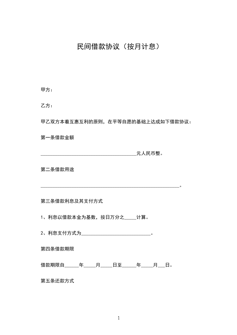 甲乙双方本着互惠互利的原则,在平等自愿的基础上达成如下借款协议: