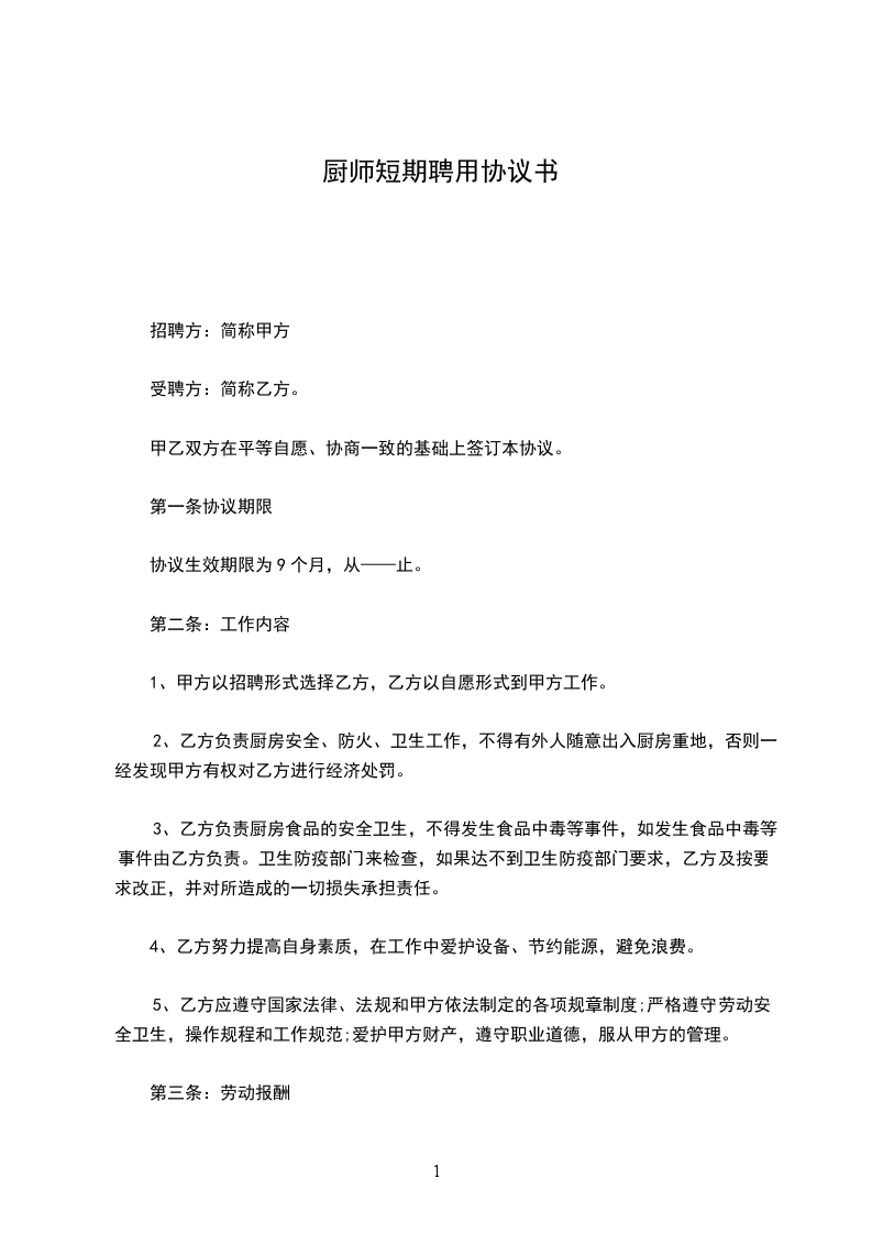 第一条协议期限