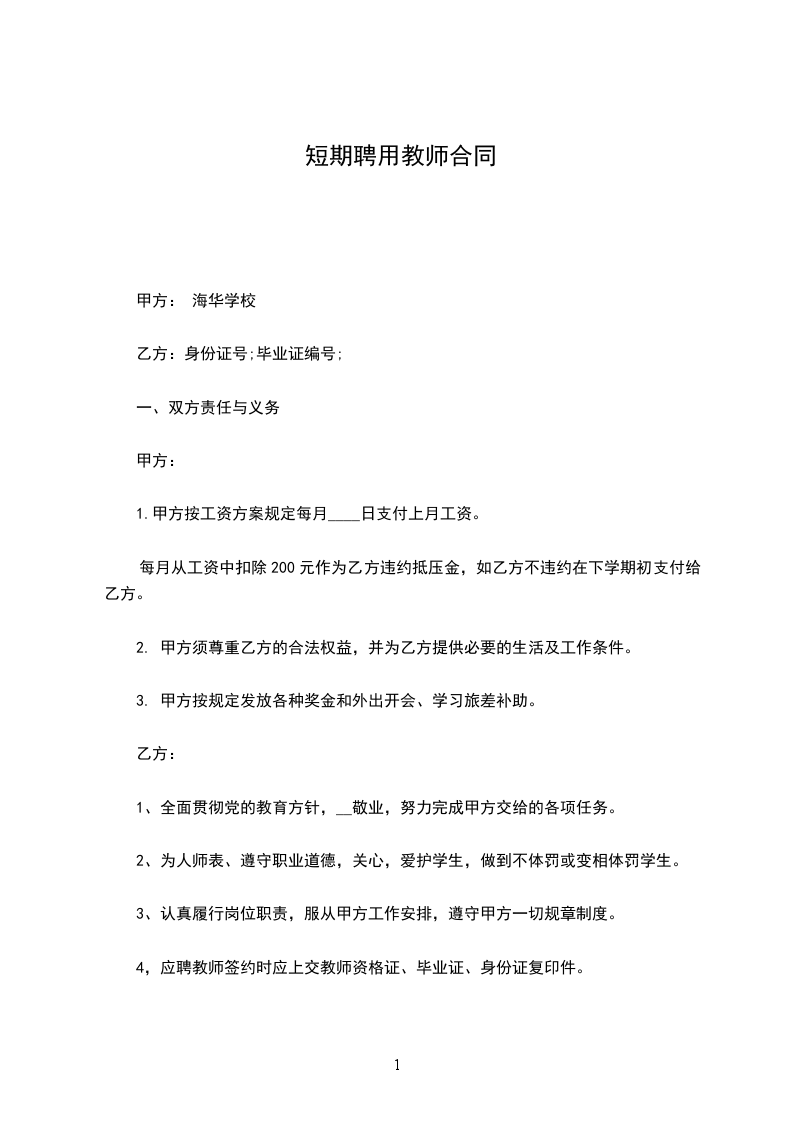 1、甲方以招聘形式选择乙方,乙方以自愿形式到甲方工作。