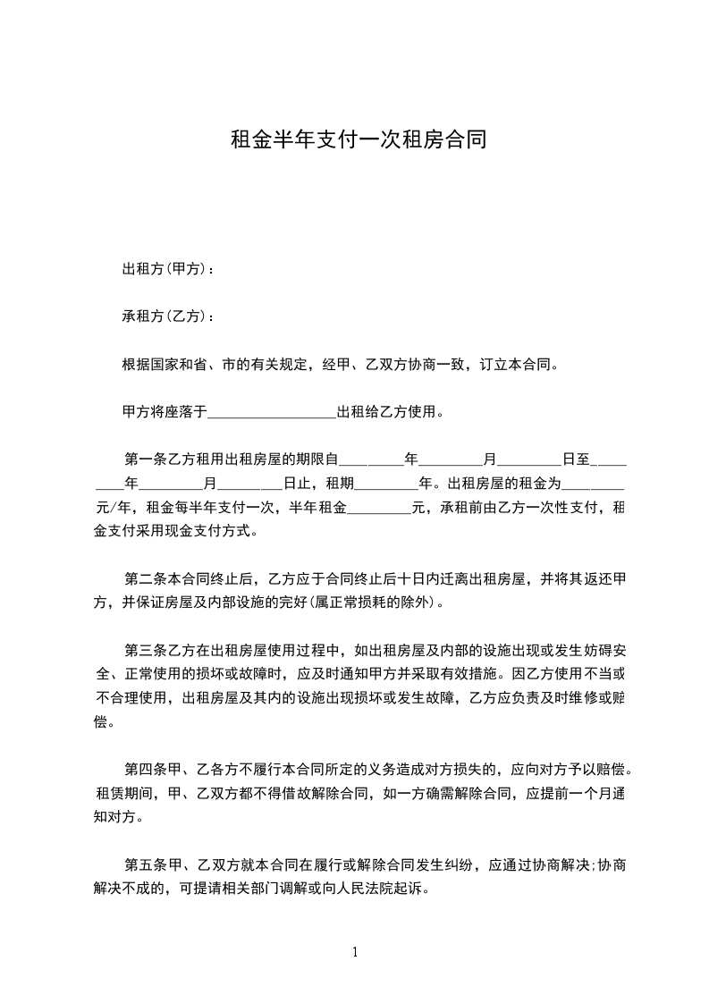 本房屋月租金为人民币______元,按月/季度/年结算。每月月初/每季季初/每年年初_日内,乙方向甲方支付全月/季/年租金。