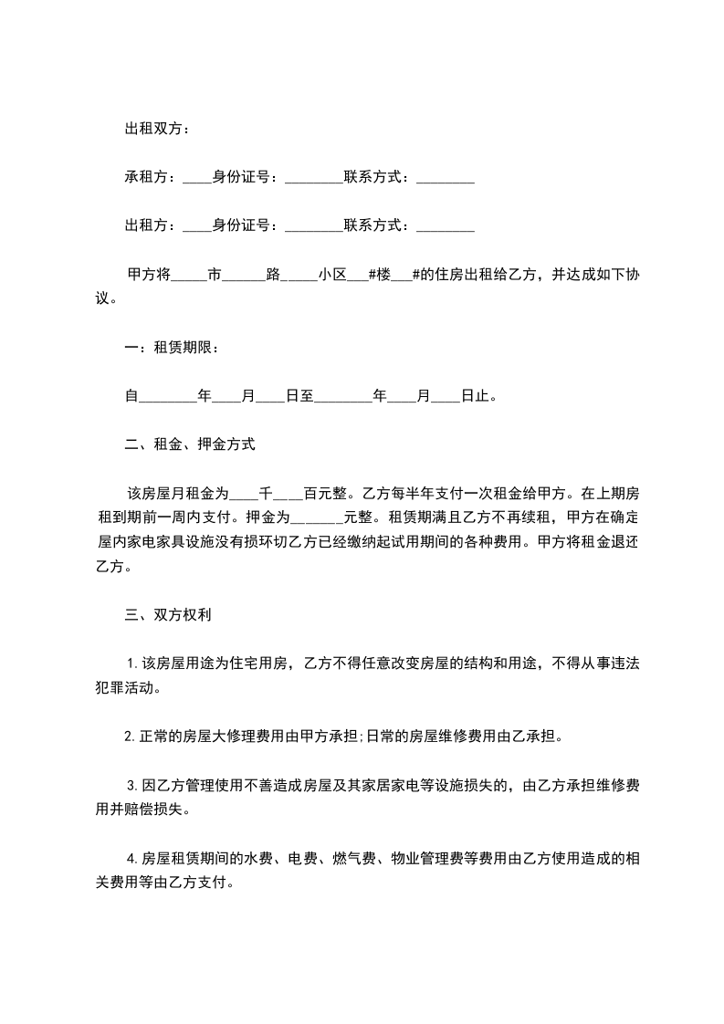 出租方_____,男/女,身份证号码___________________________