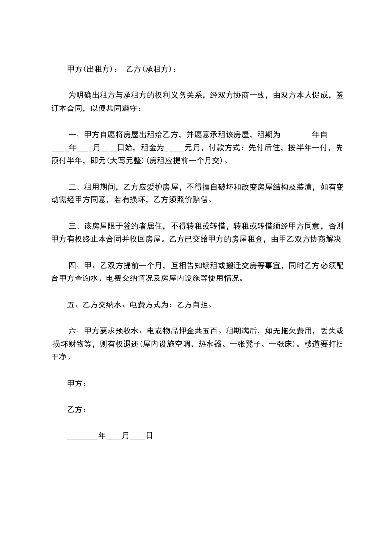 租赁期共______个月,甲方从______年______月______日起将出租房屋交付乙方使用,至______年______月______日收回。