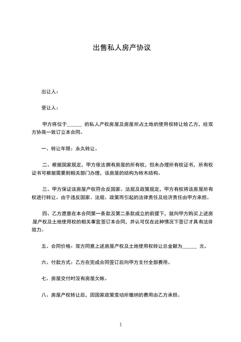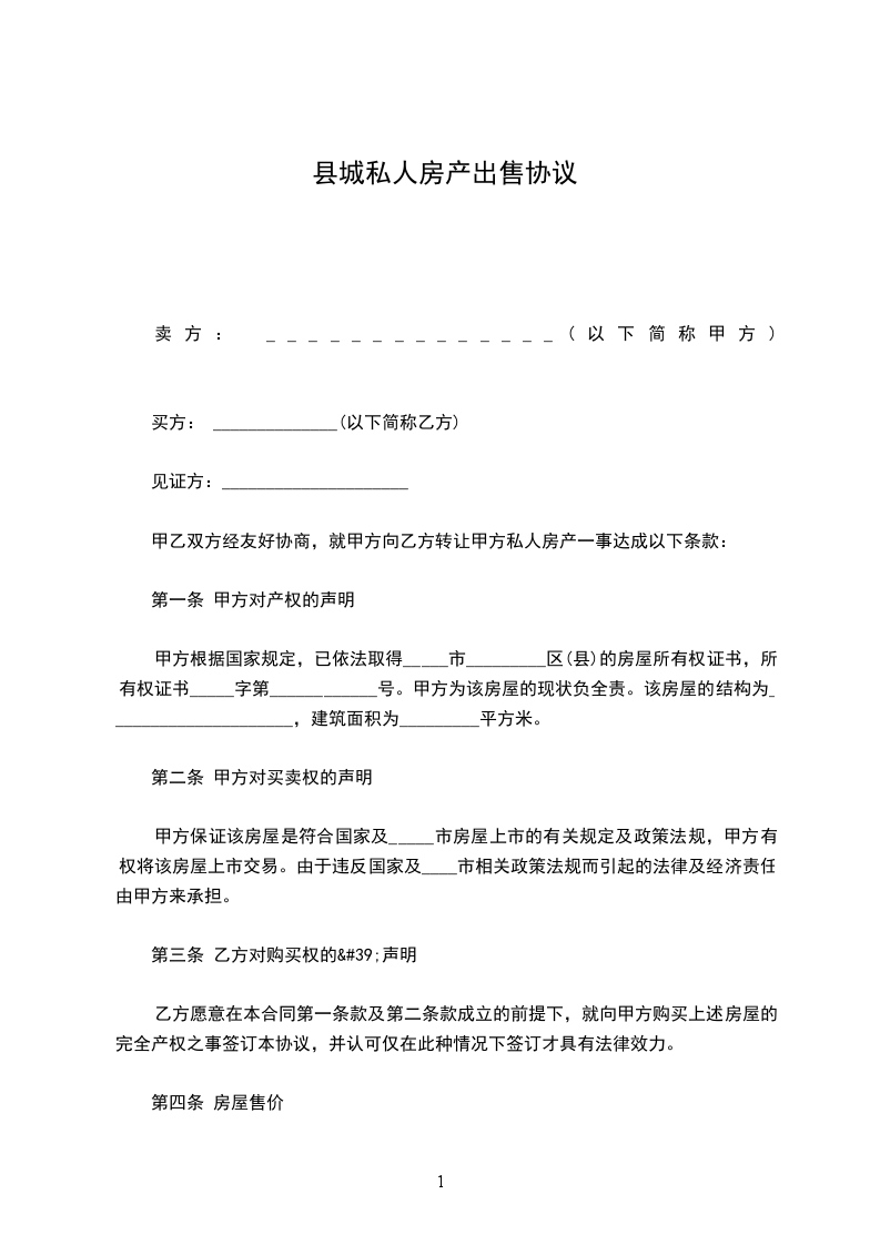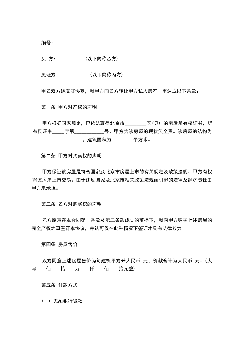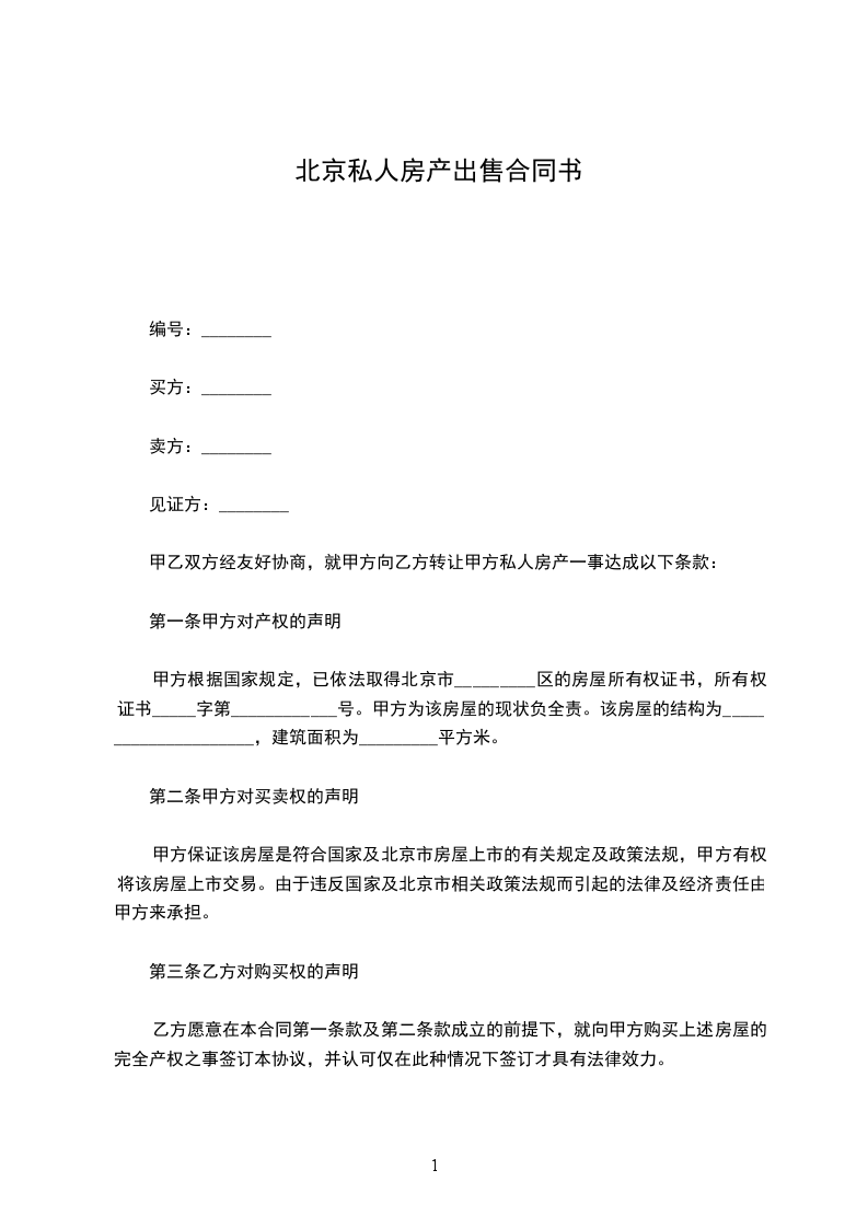 一、甲方将其拥有独立产权的位于_______市/区_____的房屋以人民币出售给乙方。乙方愿意以上述价格向甲方认购该房。