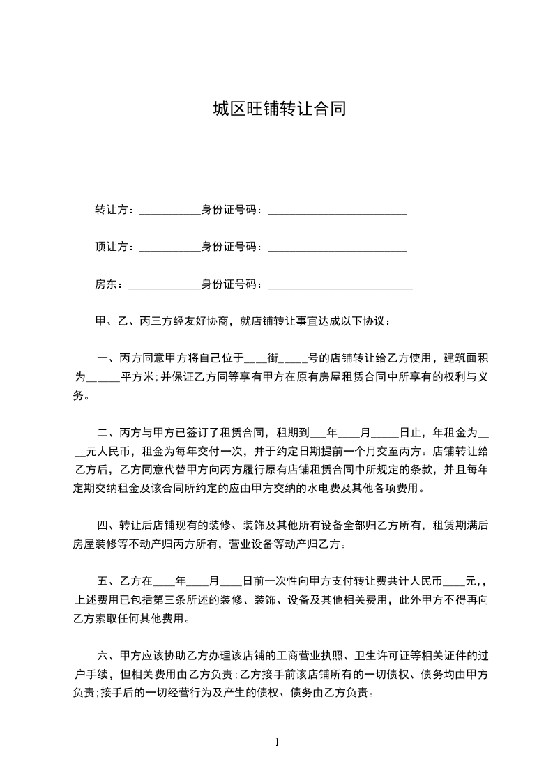 甲、乙、丙三方经友好协商,就店铺转让事宜达成以下协议: