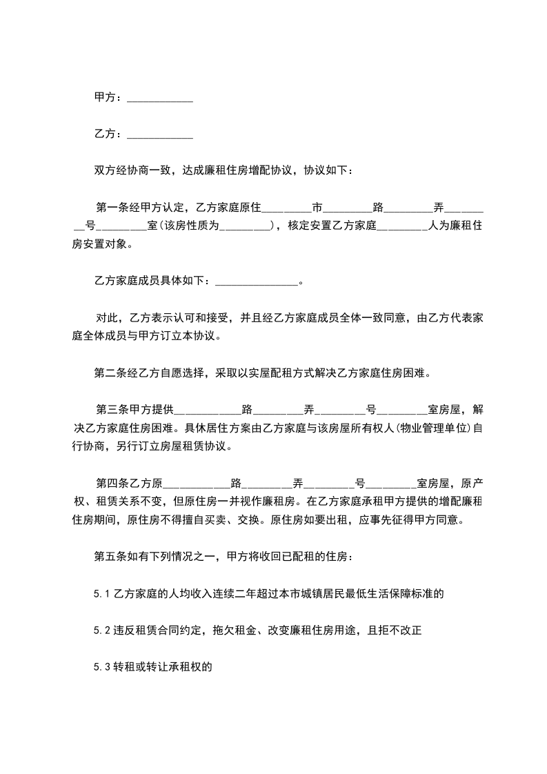 5、乙方在租赁期间应自觉遵守国家有关计划生育政策,在廉租房分配中,同等条件下优先为城镇计生家庭提供廉租房。