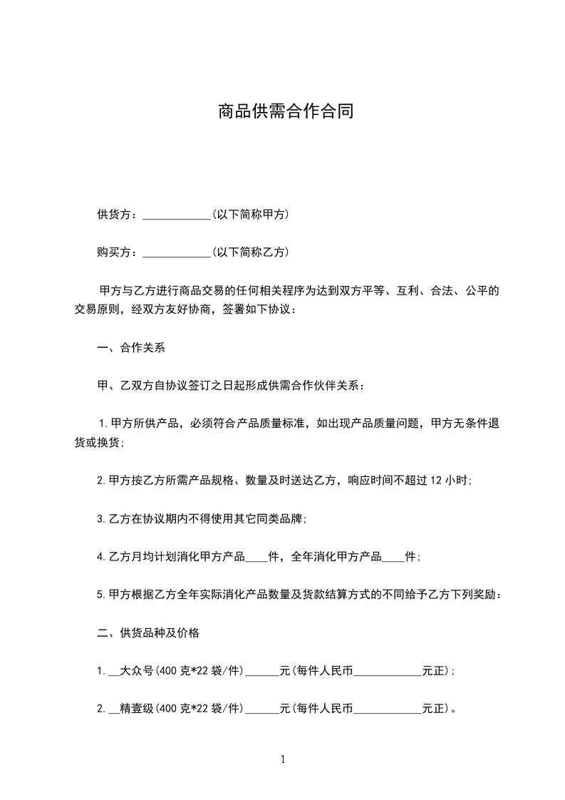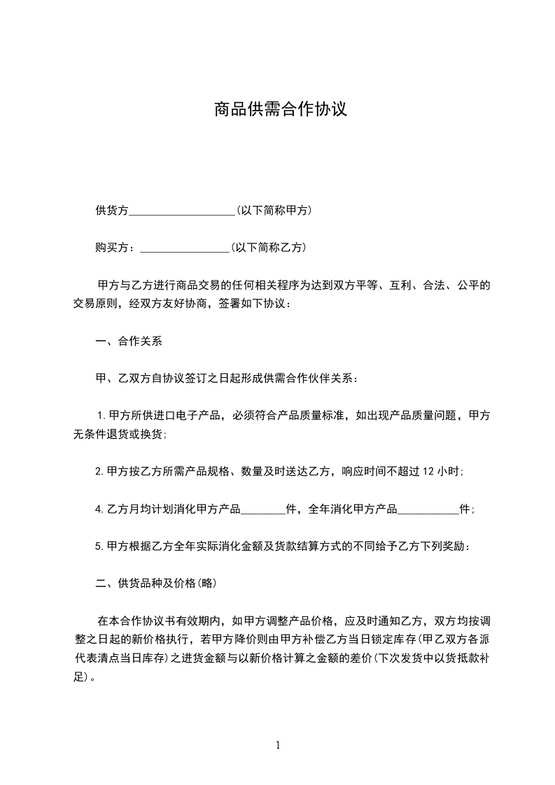1.甲方所供产品,必须符合产品质量标准,如出现产品质量问题,甲方无条件退货或换货;