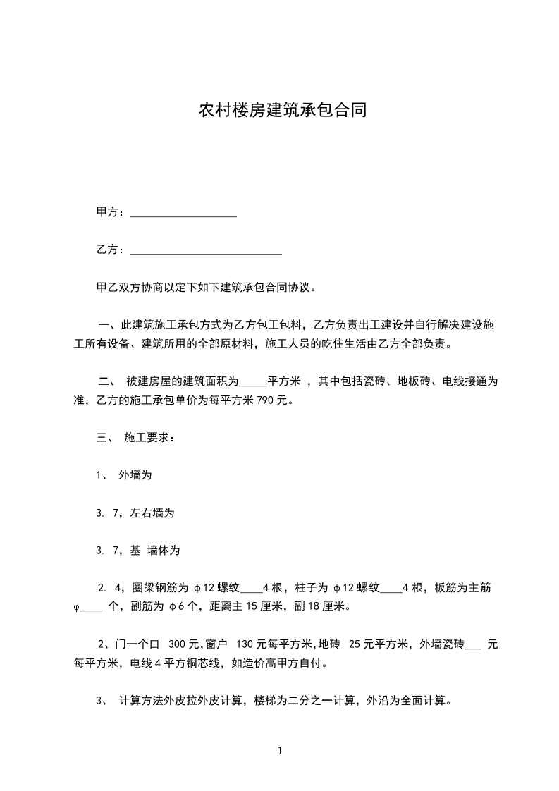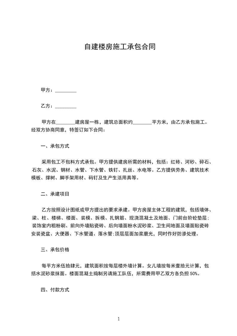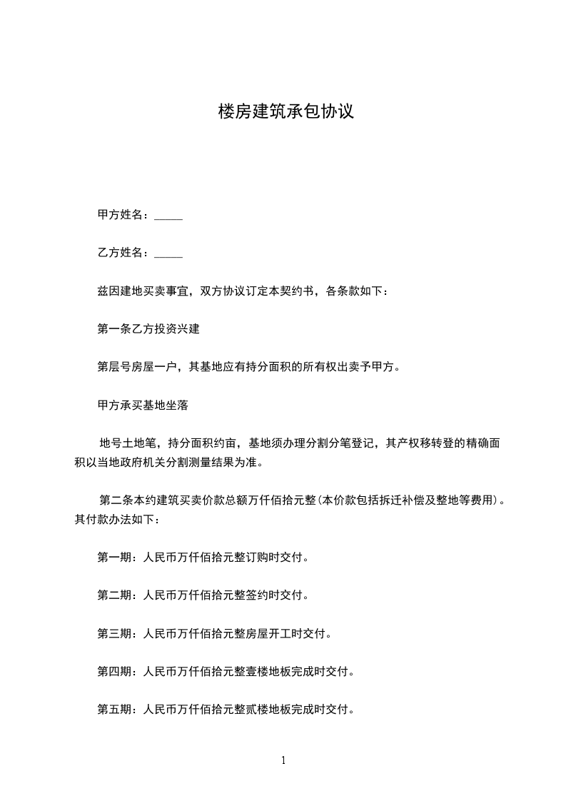 1:价格:________元/平方米。建筑面积按照国家规定计算方式计算,增减工程量按照市场行情,双方协商解决。