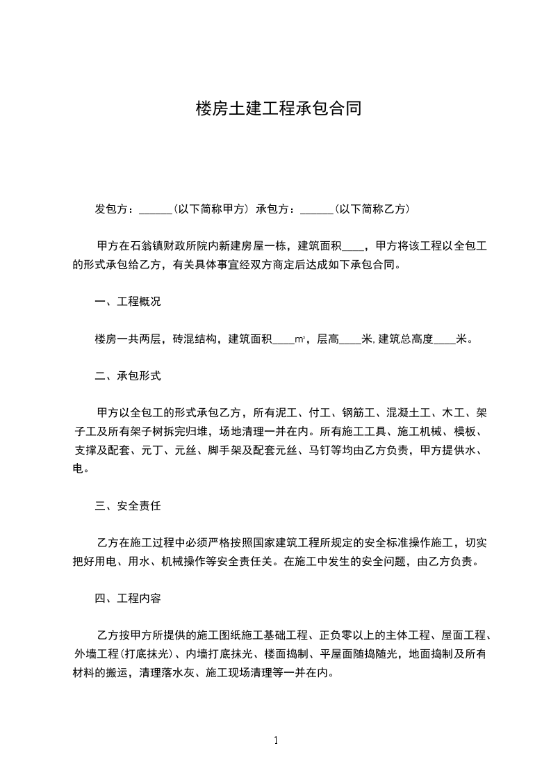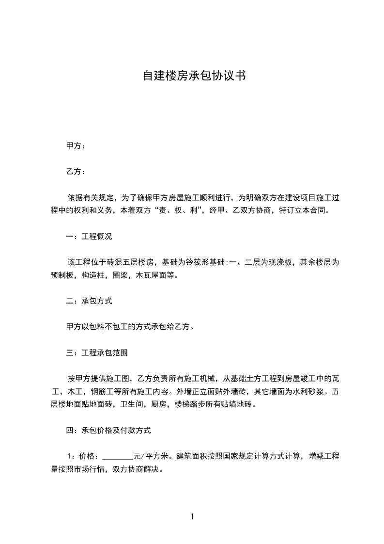按甲方提供施工图,乙方负责所有施工机械,从基础土方工程到房屋竣工中的瓦工,木工,钢筋工等所有施工内容。外墙正立面贴外墙砖,其它墙面为水利砂浆。五层楼地面贴地面砖,卫生间,厨房,楼梯踏步所有贴墙地砖。
