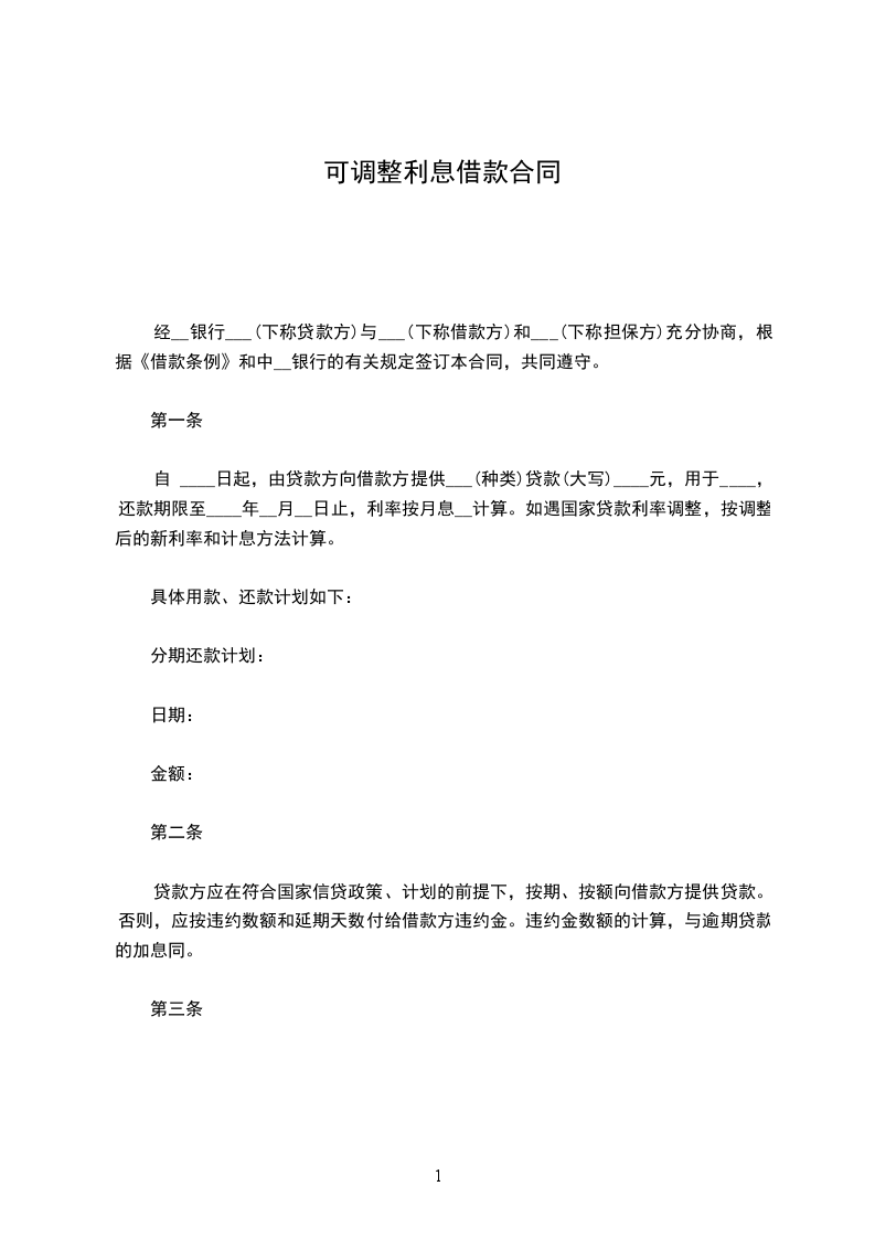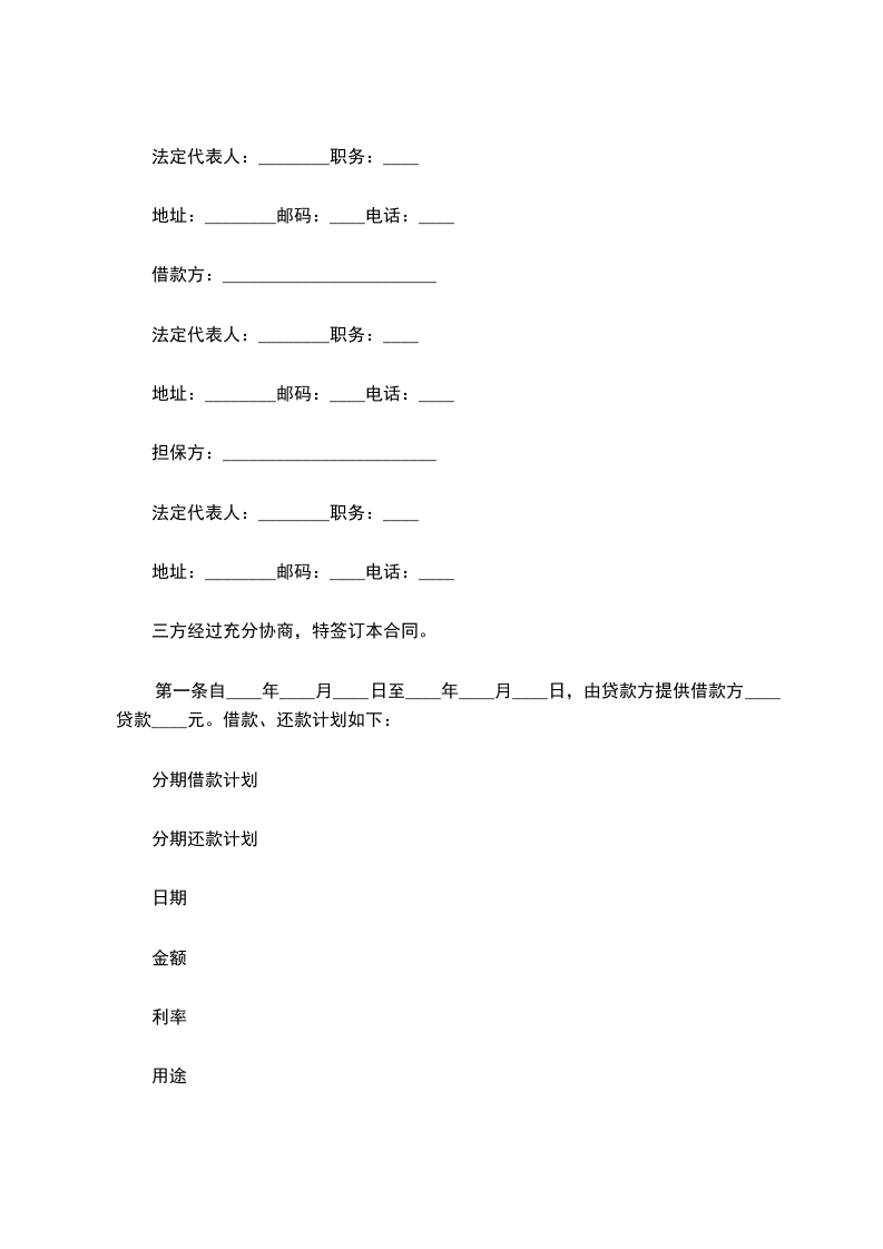 第一条自____年____月____日至____年____月____日,由贷款方提供借款方____贷款____元。借款、还款计划如下: