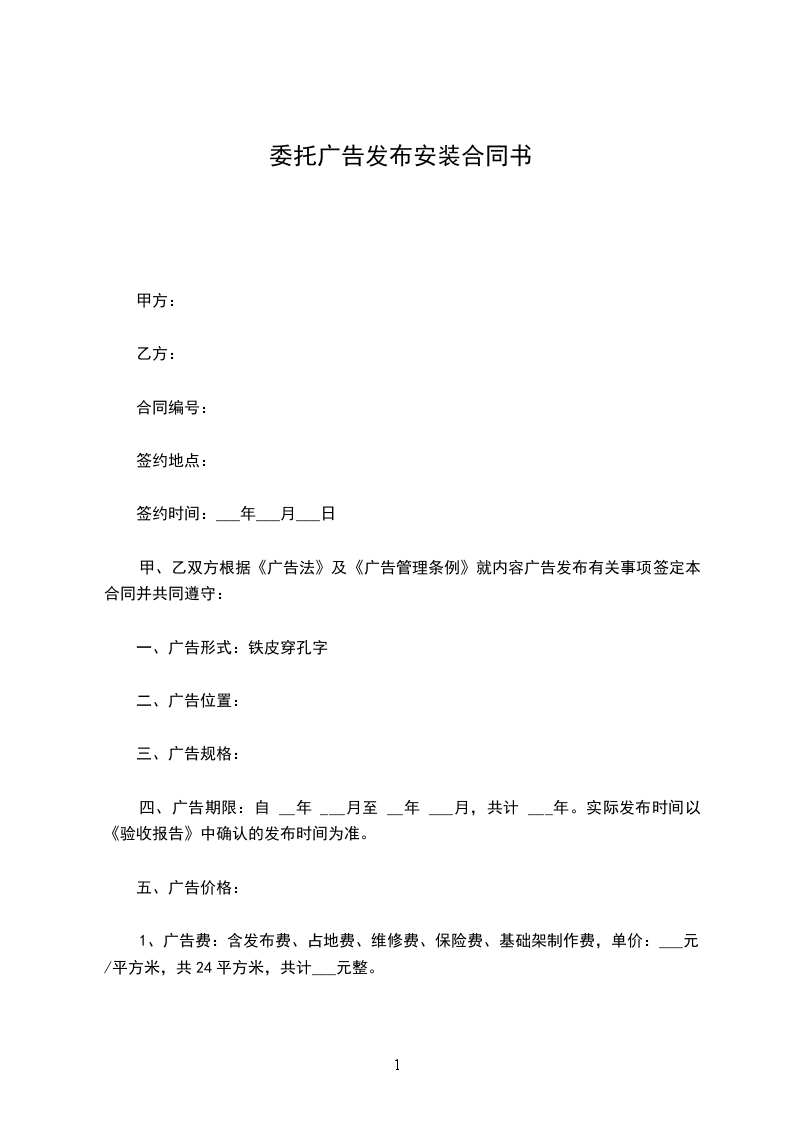 1、广告费:含发布费、占地费、维修费、保险费、基础架制作费,单价:___元/平方米,共24平方米,共计___元整。