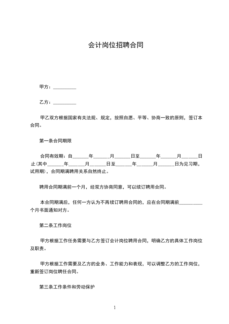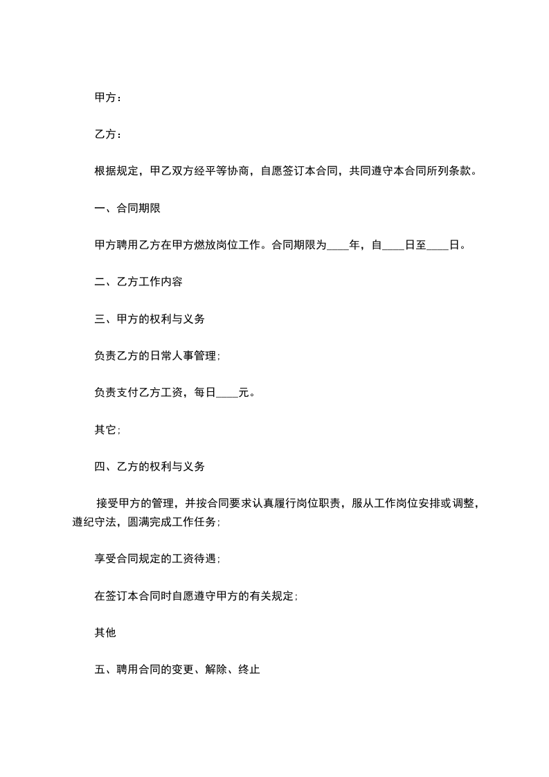 二、根据甲方的工作安排,聘用乙方在工作_______岗位。