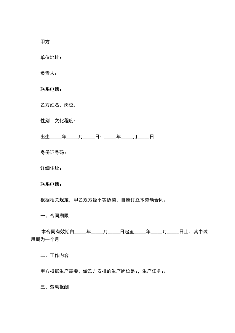 三、甲方聘用乙方的月薪为____________元。试用期满后,并经考核合格,可根据平等协商的原则,签订正式劳动合同。