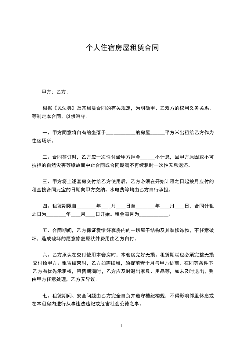 七、租赁期间、安全问题由乙方完全自负并遵守楼纪楼规,不得影响邻里休息或在本租房内进行从事违法违纪或危害社会公德之事。
