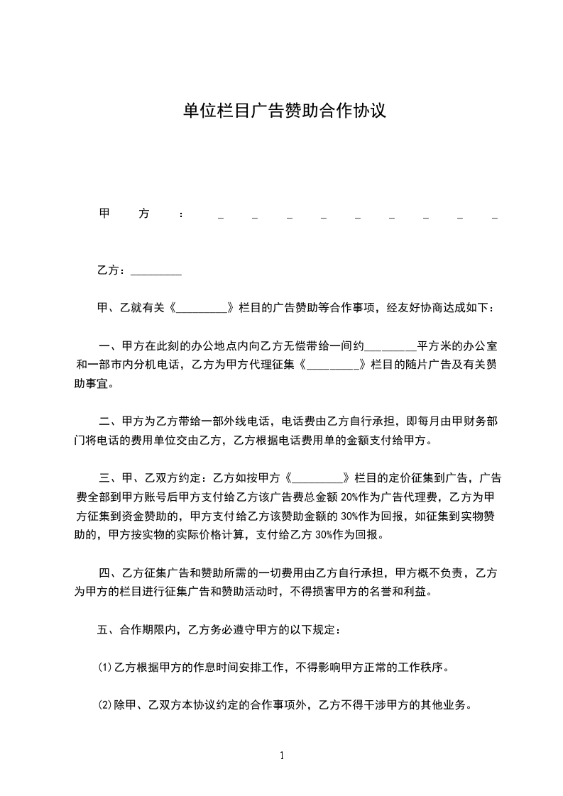 甲方负责__________的策划、组织、实施,并为乙方提供全车队所有车辆相应部位的广告及其他回报;乙方参与__________的相关活动,为甲方提供经费赞助,赞助额度根据车身不同的广告位而确定。