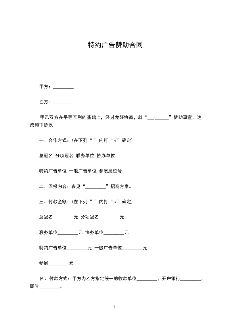 7.特别赞助企业可以在指定范围内,使用______________的名称及徽标;
