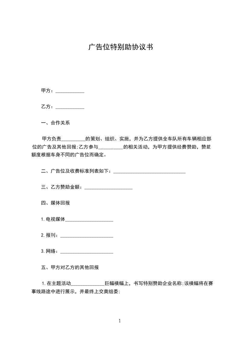 六、广告文字、图片及标识由特别赞助企业在协议签定之后及时提供资料给组委会;制作和发布由组委会统一安排。