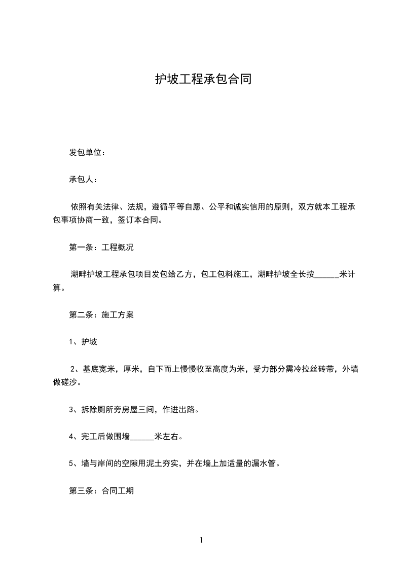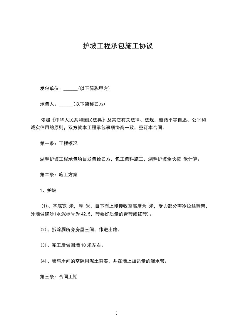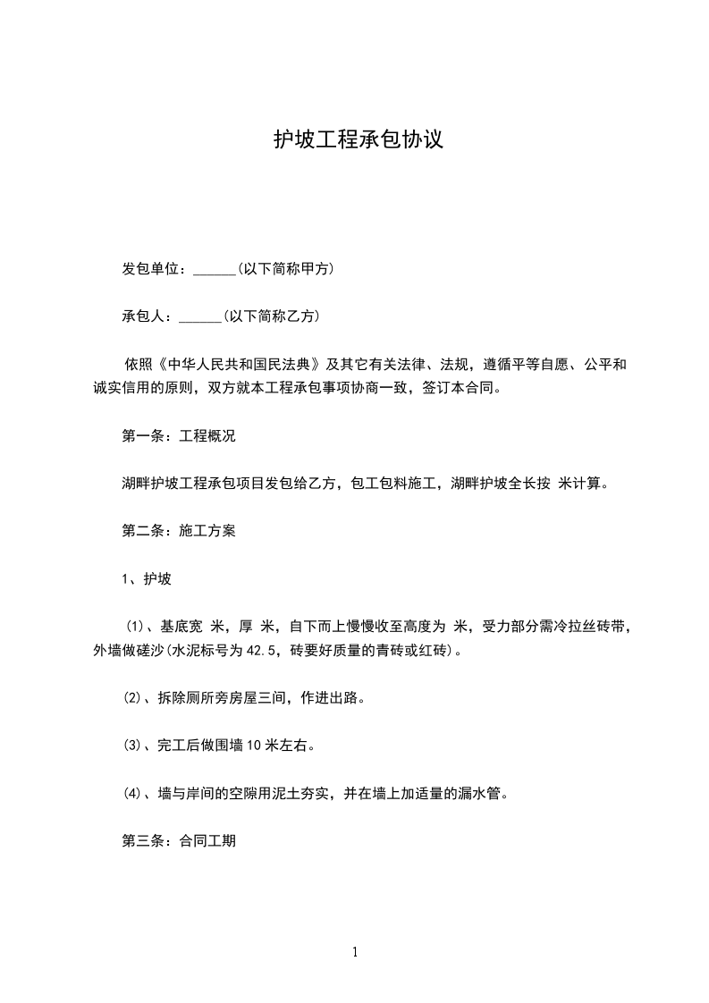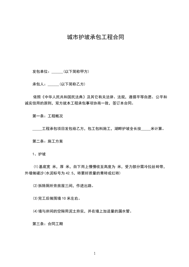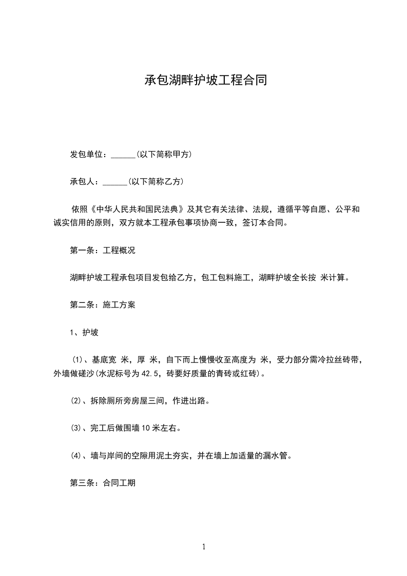 湖畔护坡工程承包项目发包给乙方,包工包料施工,湖畔护坡全长按______米计算。