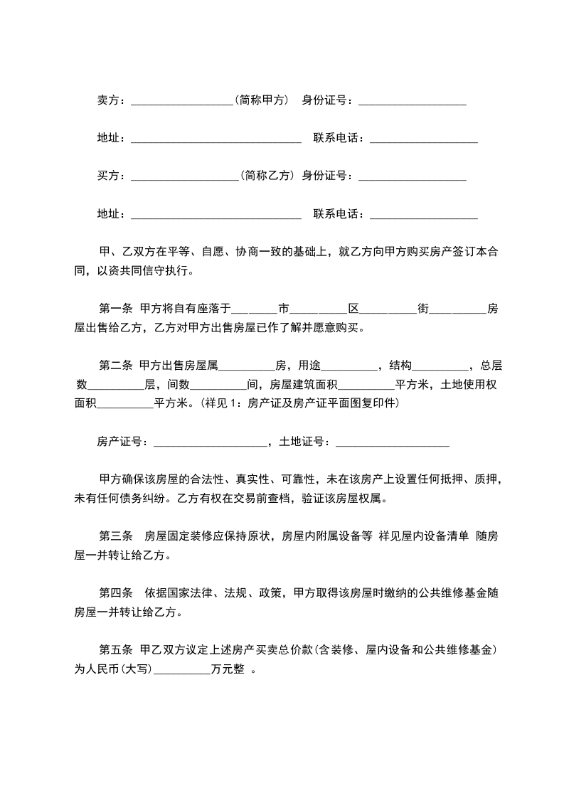 第一条乙方购买甲方座落在____市____街____巷____号的房屋栋间,建筑面积为____平方米。