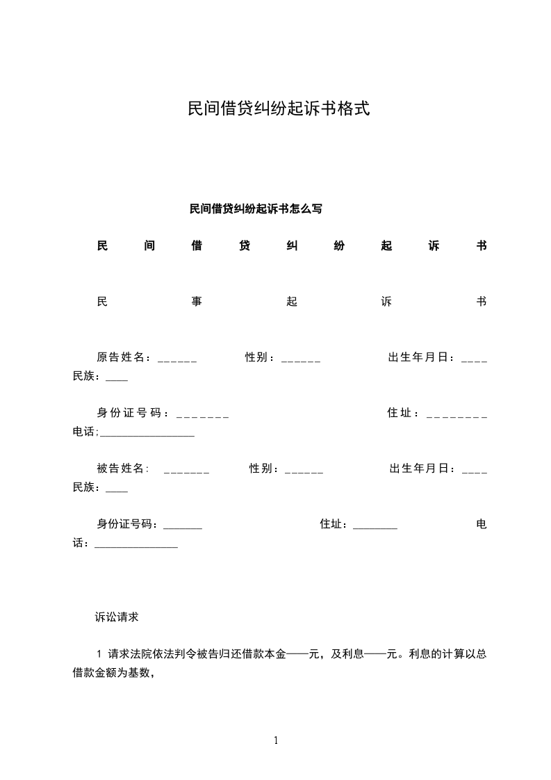 民间借贷纠纷起诉书怎么写 民间借贷纠纷起诉书