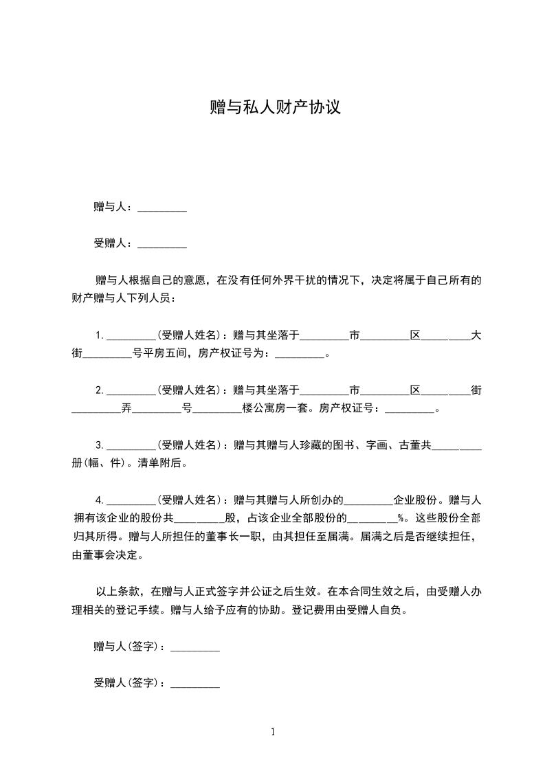 赠与人:_________受赠人:_________