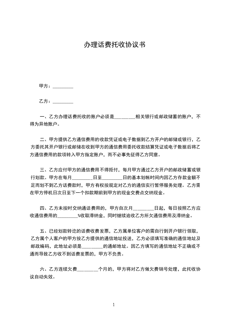 六、乙方连续欠费_________个月的,甲方将对乙方做欠费销号处理,此托收协议自动失效。