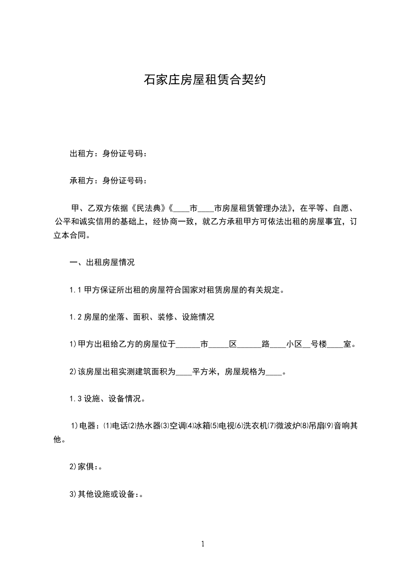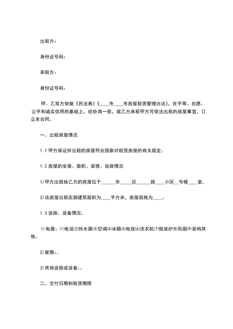 1)甲方出租给乙方的房屋位于______市_____区______路____小区__号楼____室。