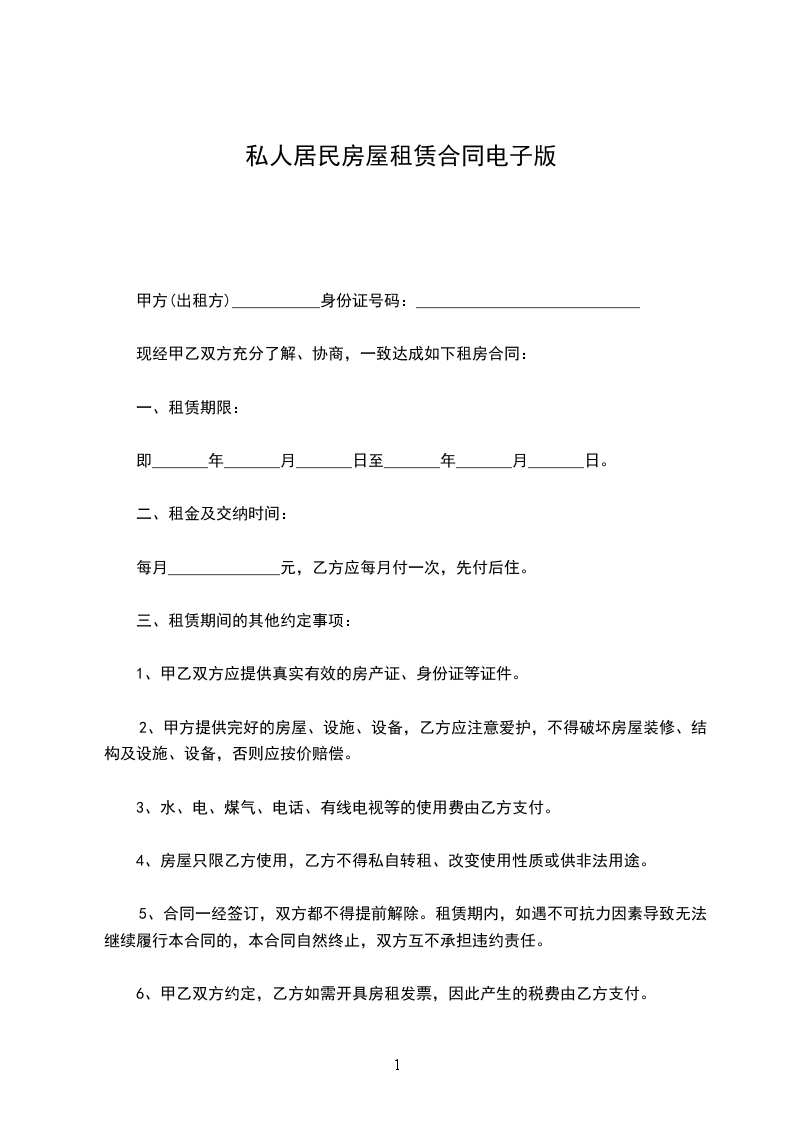 出租方:____________身份证号:_____________________________联系方式:_________________________住址:________________________________