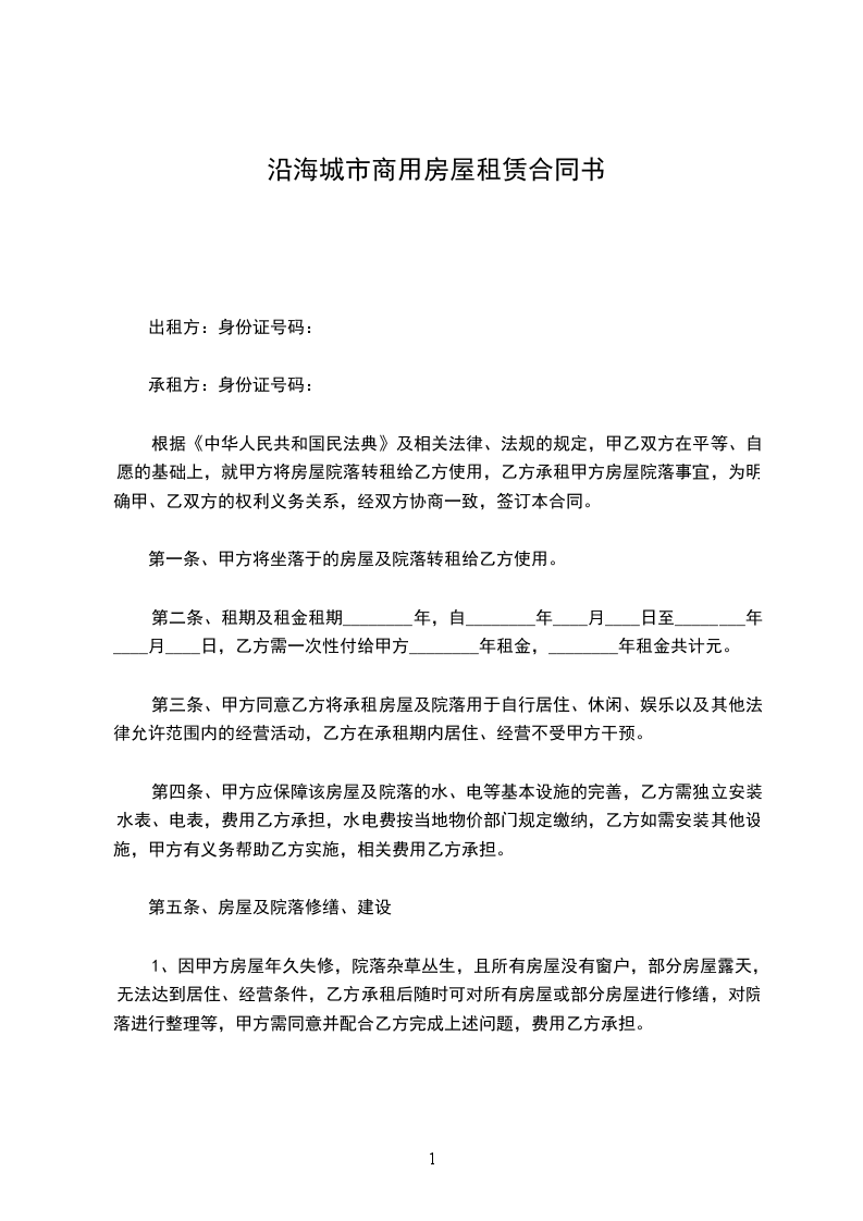 根据《中华人民共和国民法典》及相关法律、法规的规定,甲乙双方在平等、自愿的基础上,就甲方将房屋院落转租给乙方使用,乙方承租甲方房屋院落事宜,为明确甲、乙双方的权利义务关系,经双方协商一致,签订本合同。