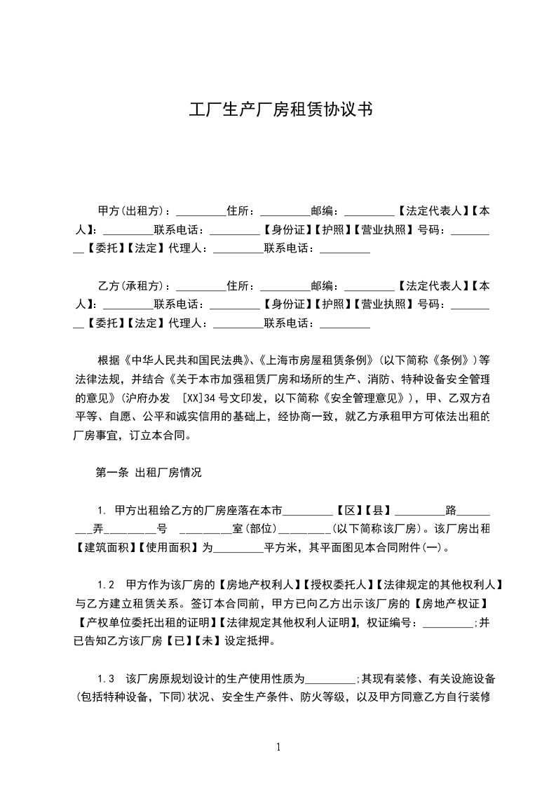 1、甲、乙双方约定,该厂房租赁每日每平方米建筑面积租金为人民币_____元。月租金为人民币_____元,年租金为___元。