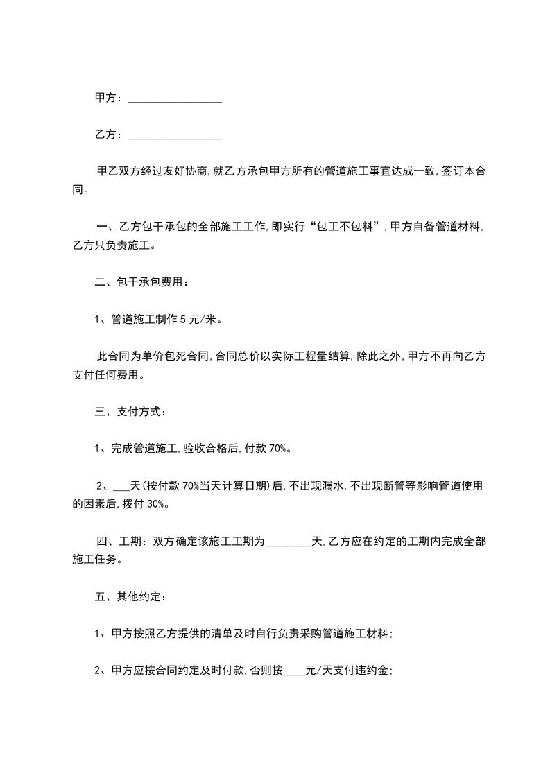 三、乙方施工时必须确保安全,责任自负。