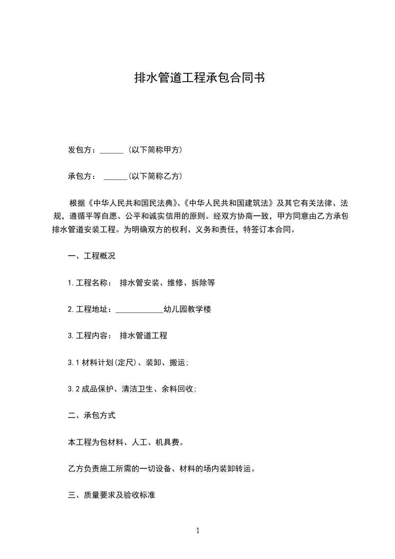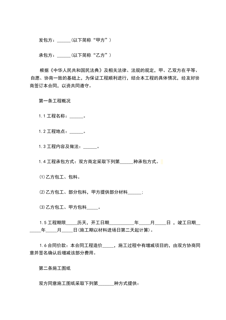 二、承包方式:包工包料。