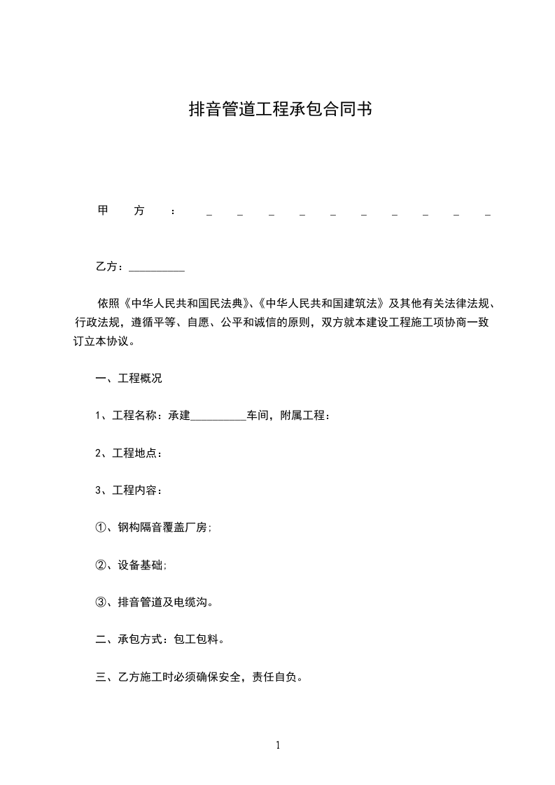 1、工程名称:承建__________车间,附属工程: