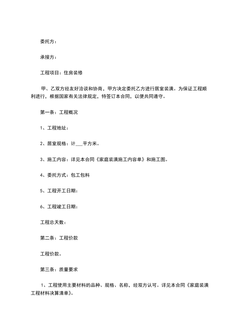 1、合同一经签订,甲方即应付%工程材料款和施工工费的_____%;当工期进度过半,甲方即第二次付施工工费的_____%。剩余%尾款待甲方对工程竣工验收后结算。向甲方办理移交及发放装潢工程保修卡,详见本合同《家庭装潢工程工程质量保修卡》。