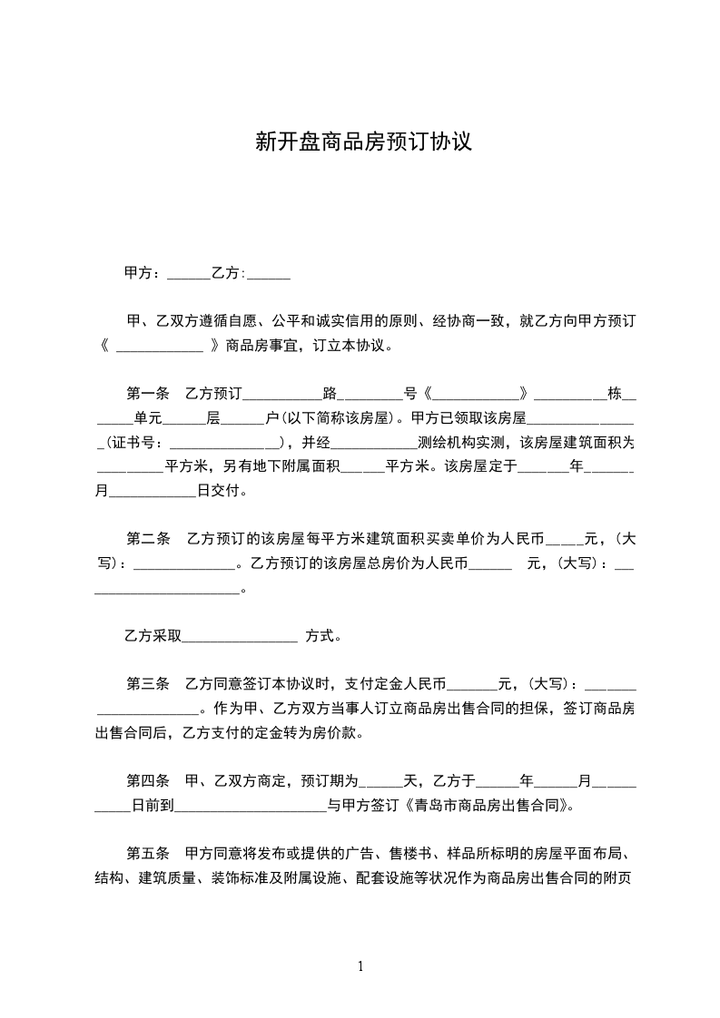 二、认购期间:甲方承诺为乙方所预定房屋保留天。