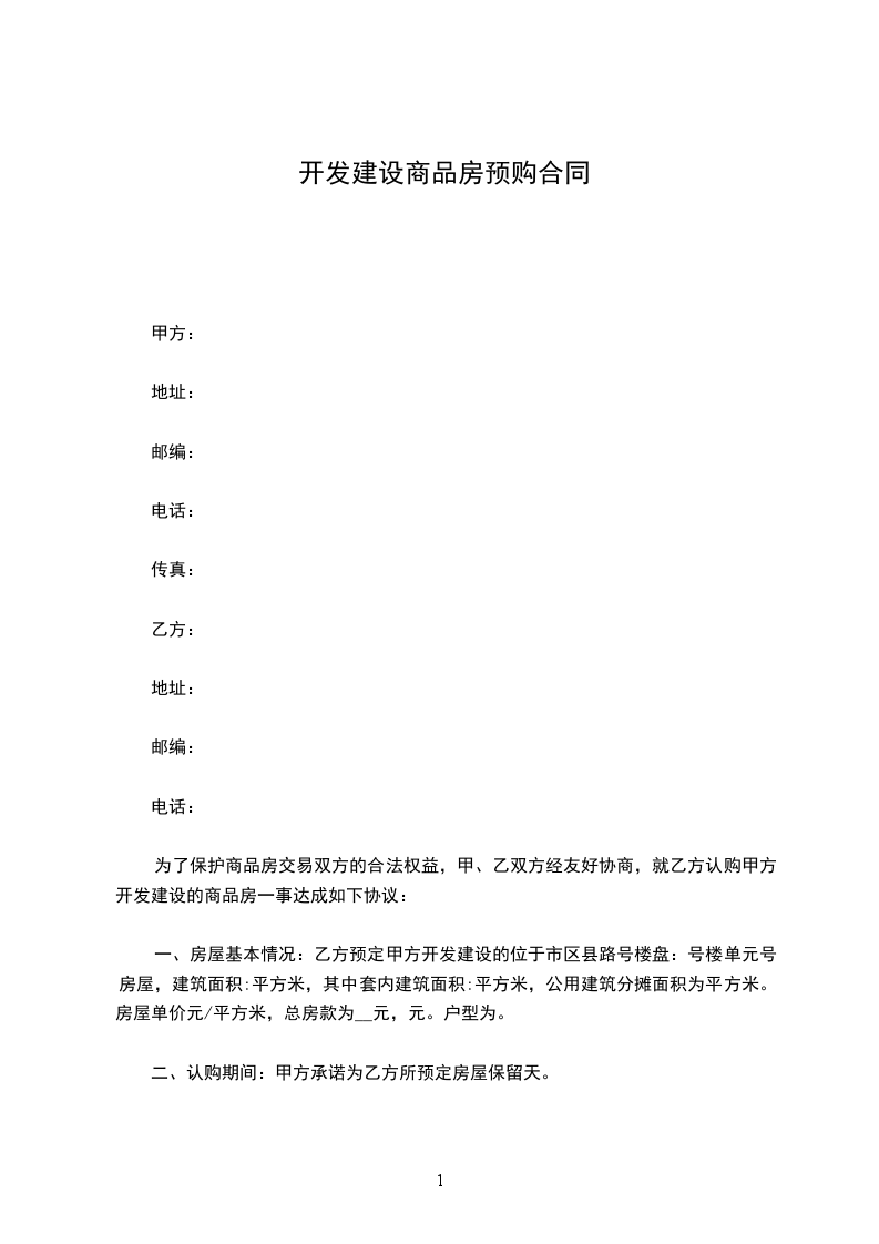 一、房屋基本情况:乙方预定甲方开发建设的位于市区县路号楼盘:号楼单元号房屋,建筑面积:平方米,其中套内建筑面积:平方米,公用建筑分摊面积为_____平方米。房屋单价元/平方米,总房款为__元,元。户型为。