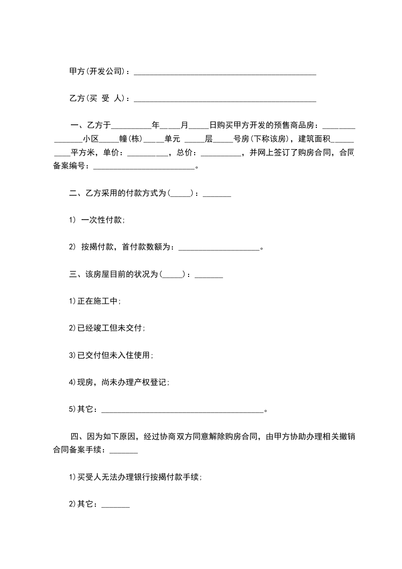 四、付款方式:乙方同意选择下列种付款方式,在与甲方签订《商品房买卖合同》后向甲方支付购房价款。