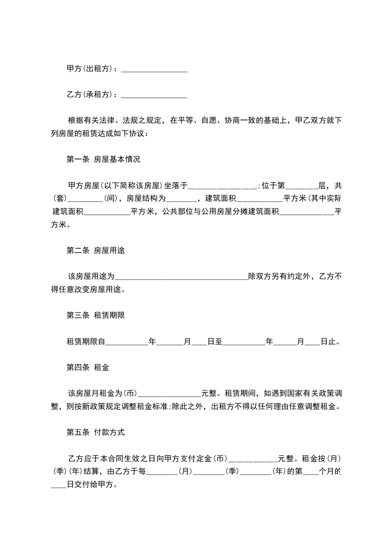 根据国家、_________市有关法律、法规以及有关规定,甲、乙双方在自愿、平等、互利的基础上,经协商一致,就甲方将其合法拥有的房屋出租给乙方使用,乙方承租使用甲方房屋事宜,订立本合同。