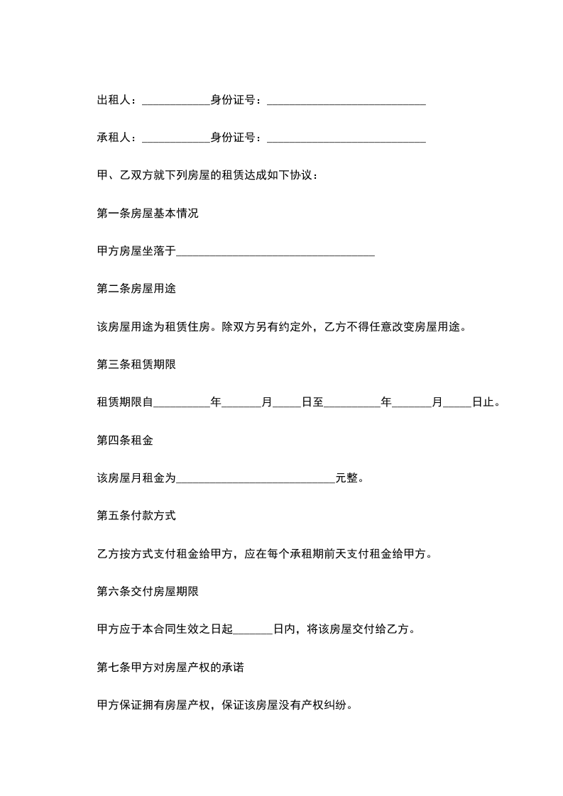1.该房屋租赁期共___个_________月。自_________年_________月_________日起至_________年_________月_________日止。