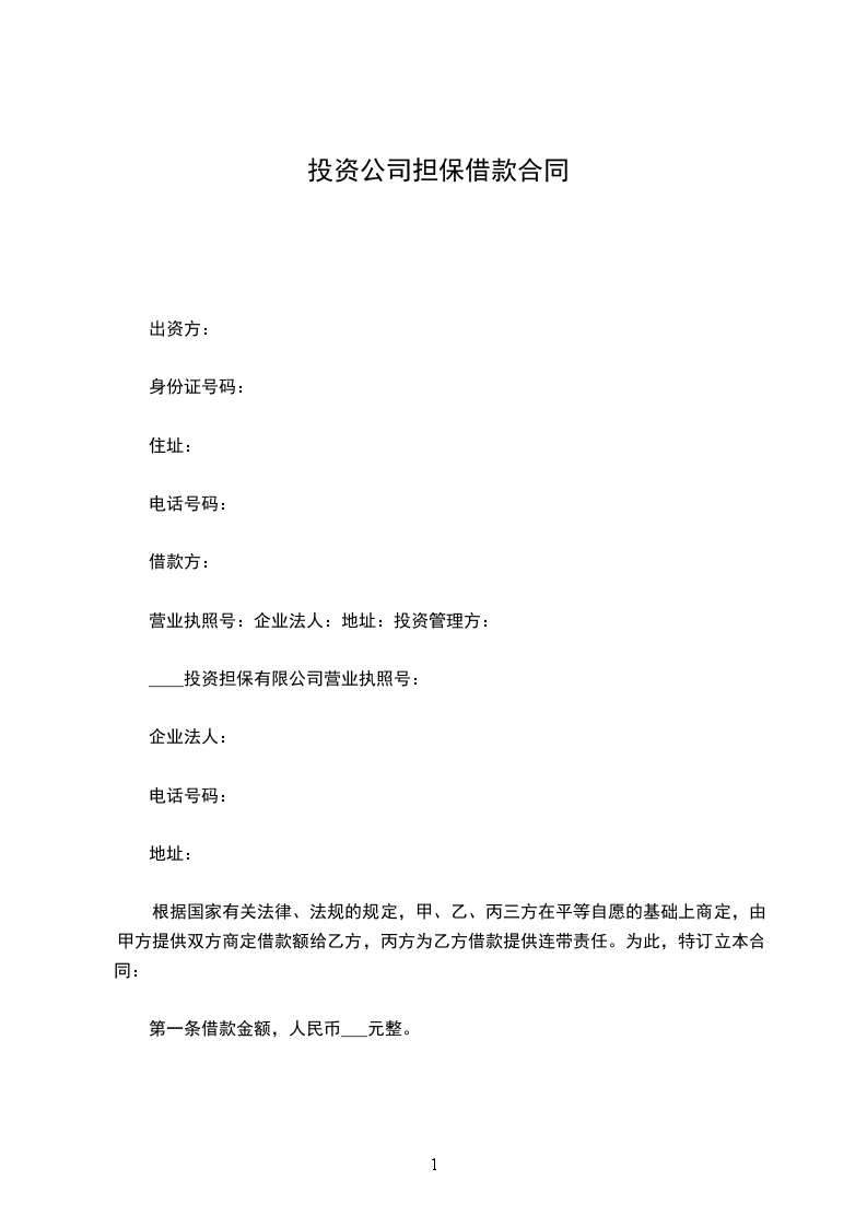 ____投资担保有限公司营业执照号: