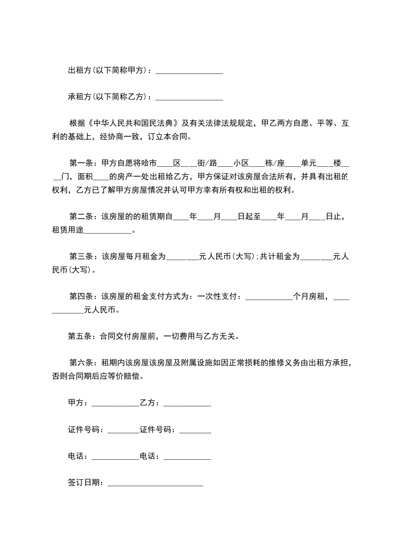 第二条出租房屋坐落于____,房屋建筑面积____平方米,房屋门窗完好,水、电、气、暖供应正常。房屋租赁期限:自_________ 止。