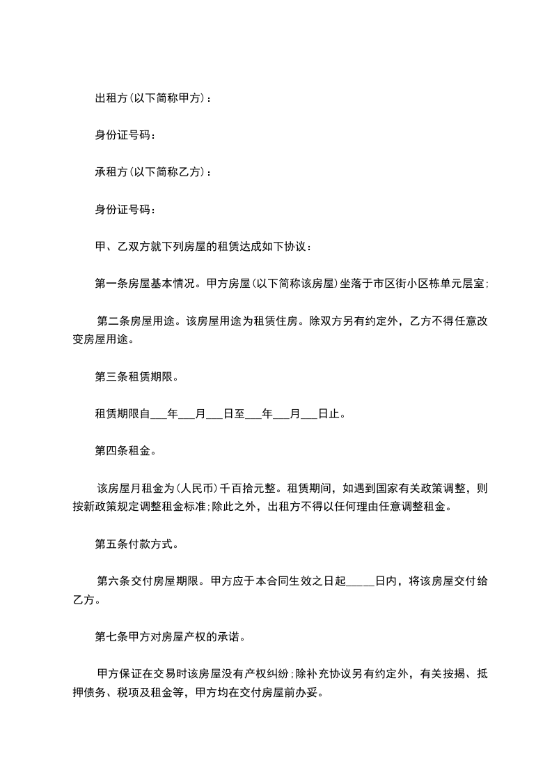 第一条甲方保证向乙方出租的房屋系本人拥有完全所有权和使用权.乙方确保了解该房屋全貌,并以现状为准。