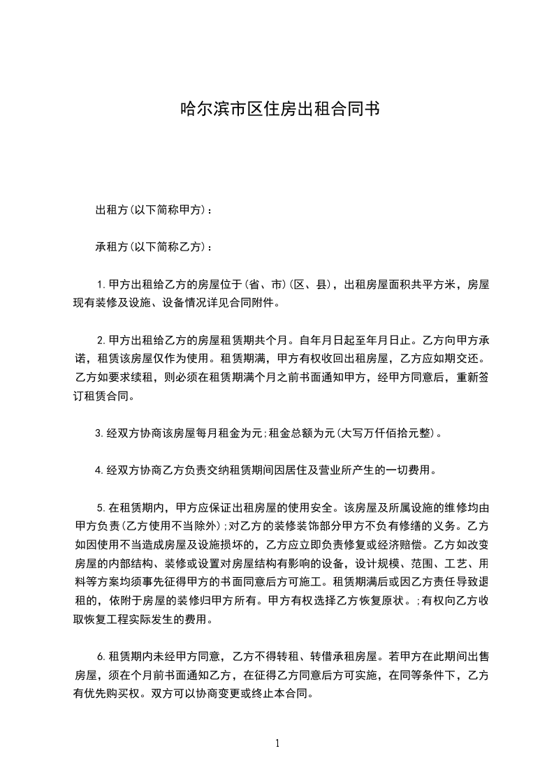 第三条租金每月人民币_________元。