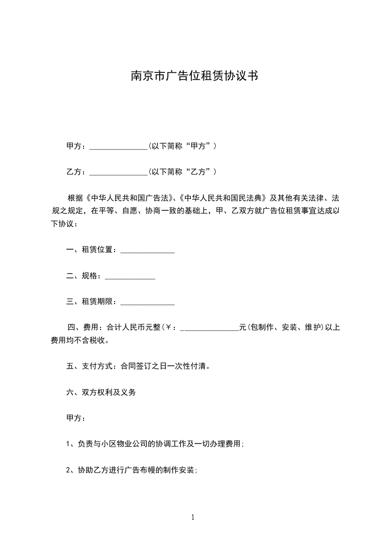 1、乙方应遵守国家的法律、法规。