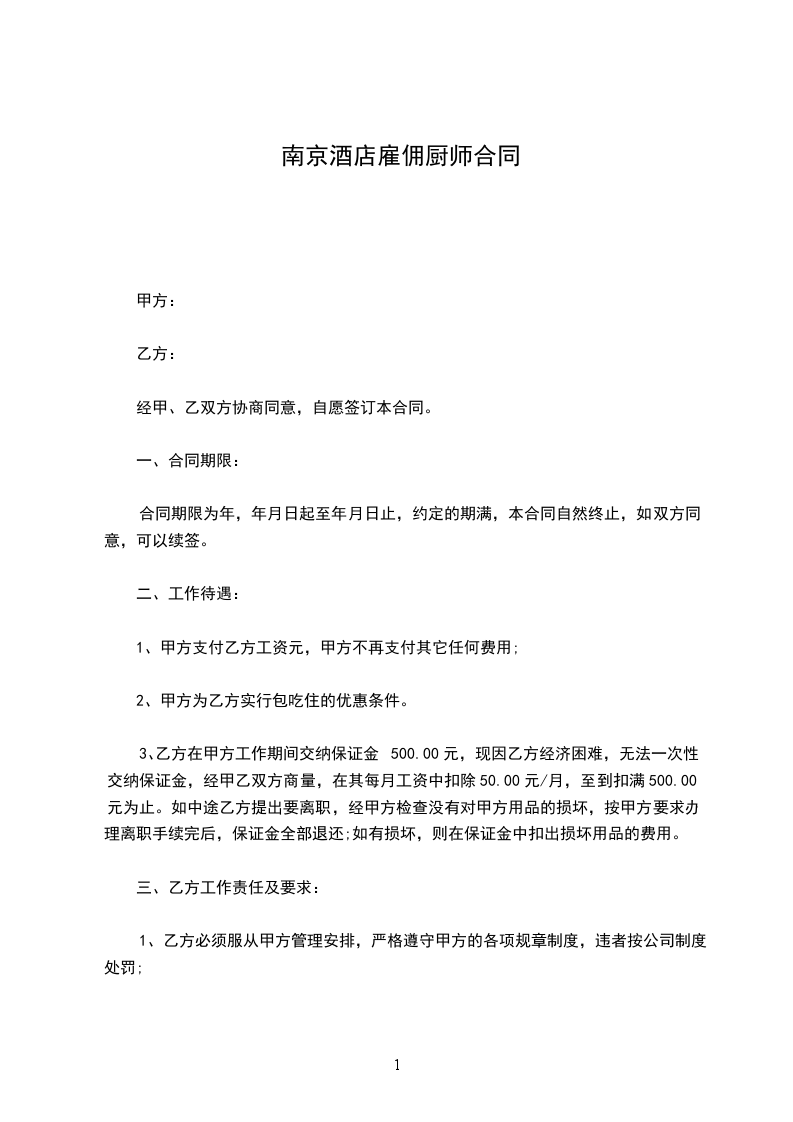 1、根据国家、市府和单位的有关规定,乙方的工作岗位,甲方按月支付乙方工资为____元人民币。
