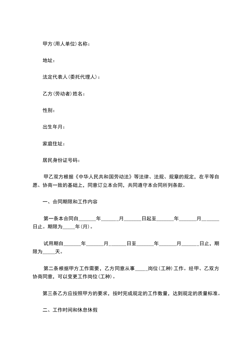 第一条本合同自_______年_______月_______日起至_______年_______月_______日止。期限为_____年(月)。