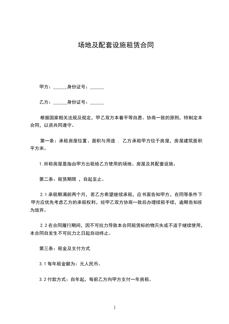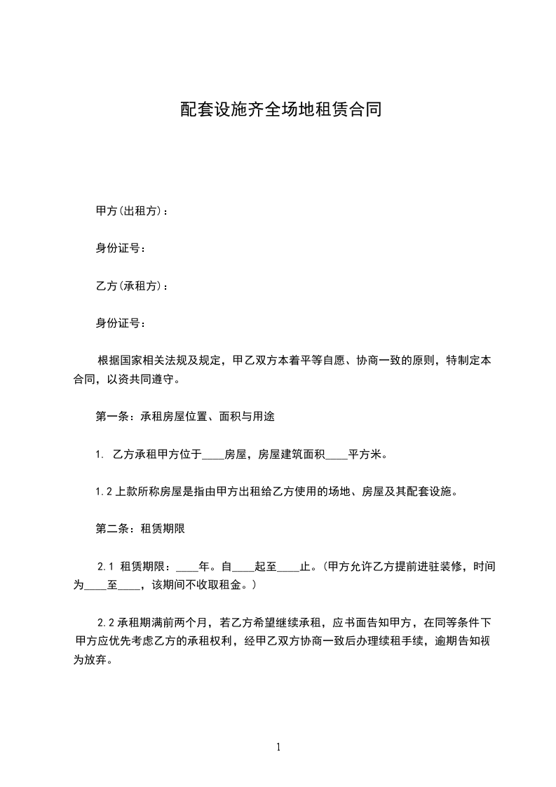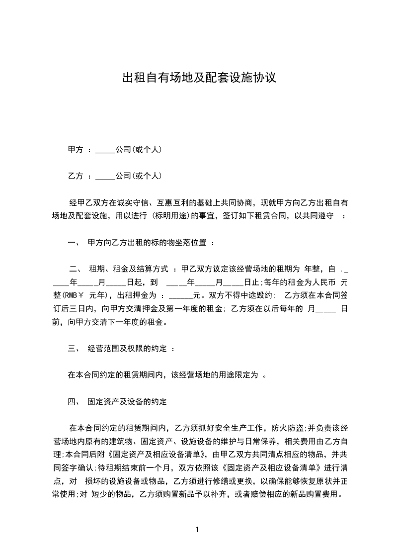 1.2上款所称房屋是指由甲方出租给乙方使用的场地、房屋及其配套设施。