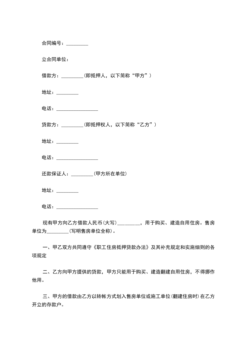 一、甲乙双方共同遵守《职工住房抵押贷款办法》及其补充规定和实施细则的各项规定