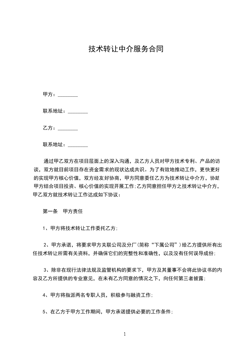 1.乙方欲提前终止本协议的,甲方应予允许,但乙方对其此前从事的中介活动仍负有独立完全的责任。