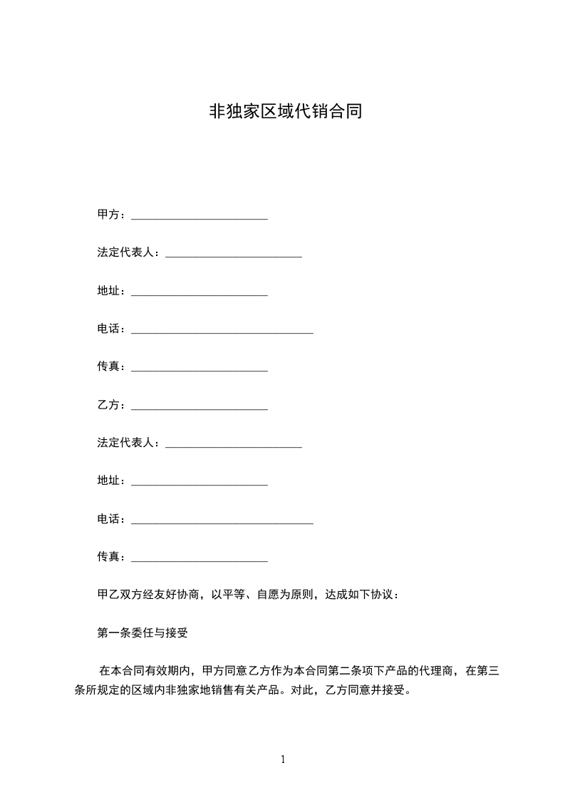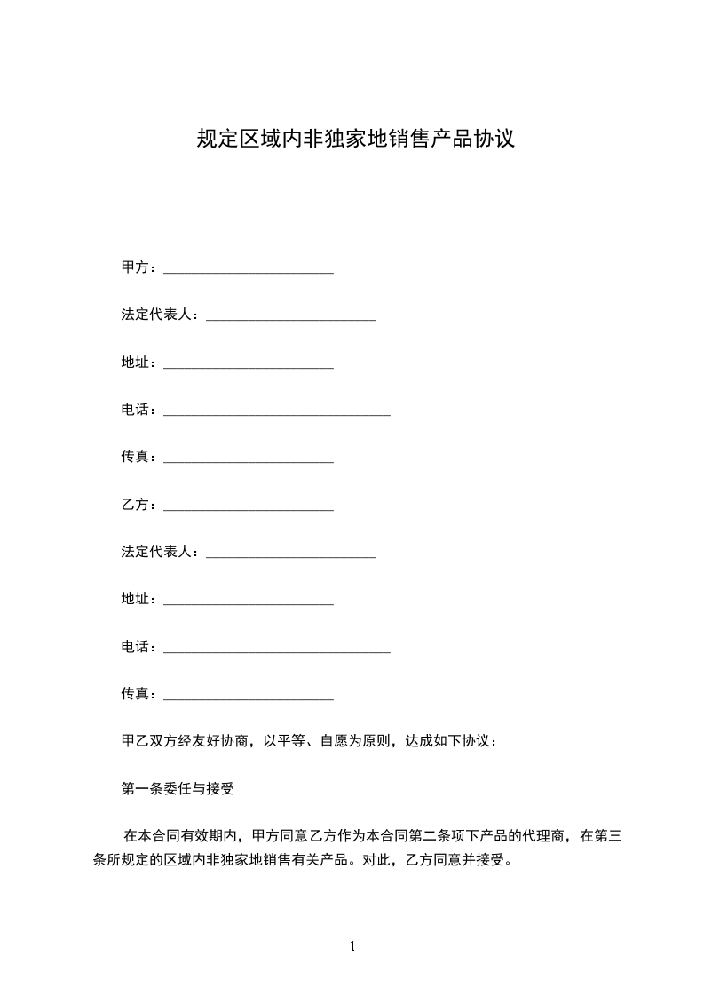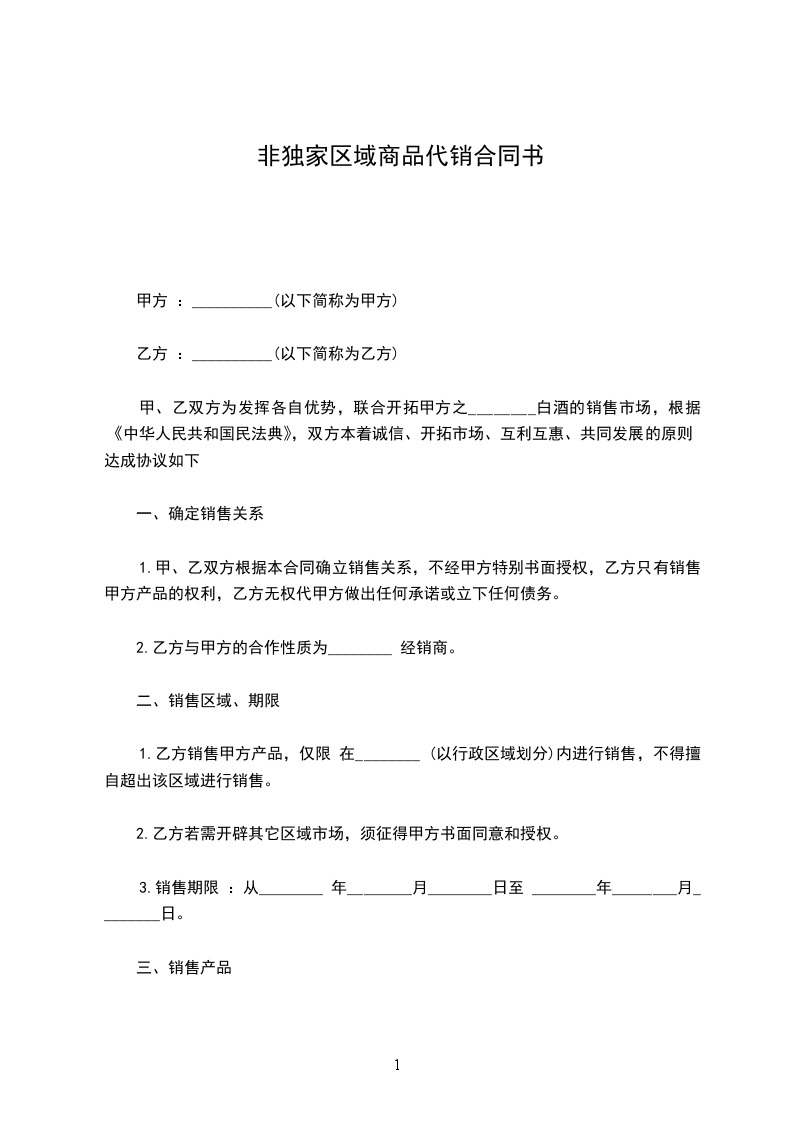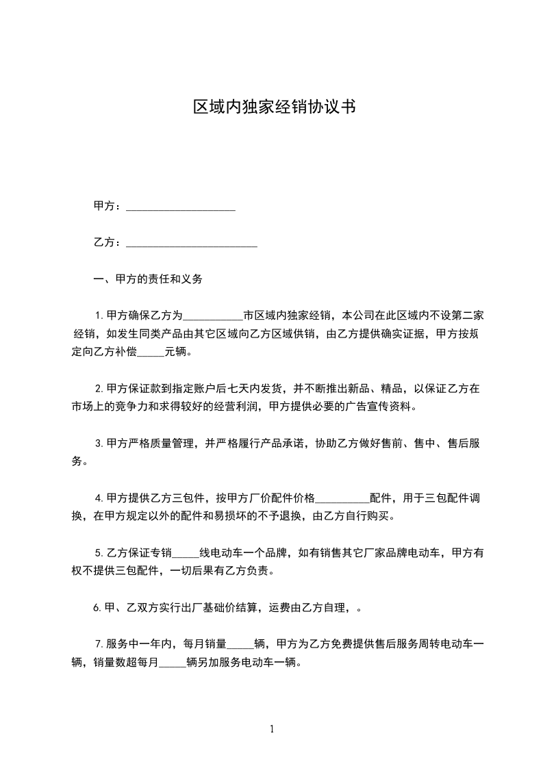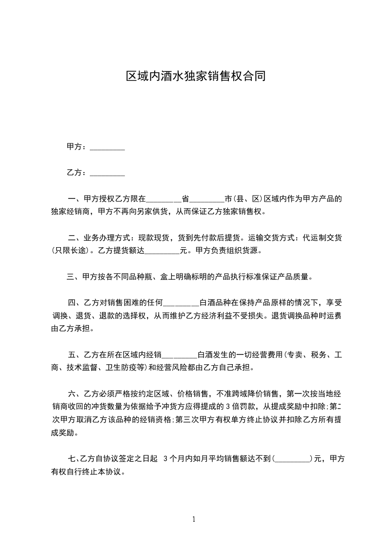 本合同所指乙方的销售区域是:________________________