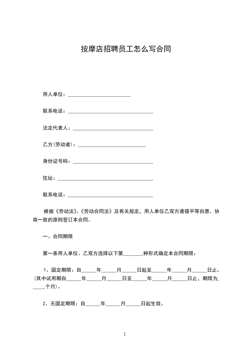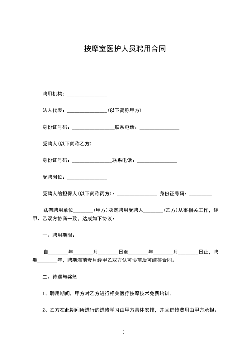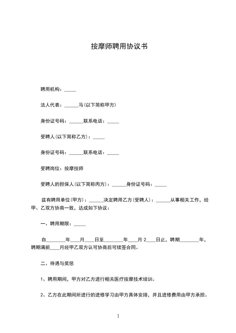 1、聘用期间,甲方对乙方进行相关医疗按摩技术免费培训。